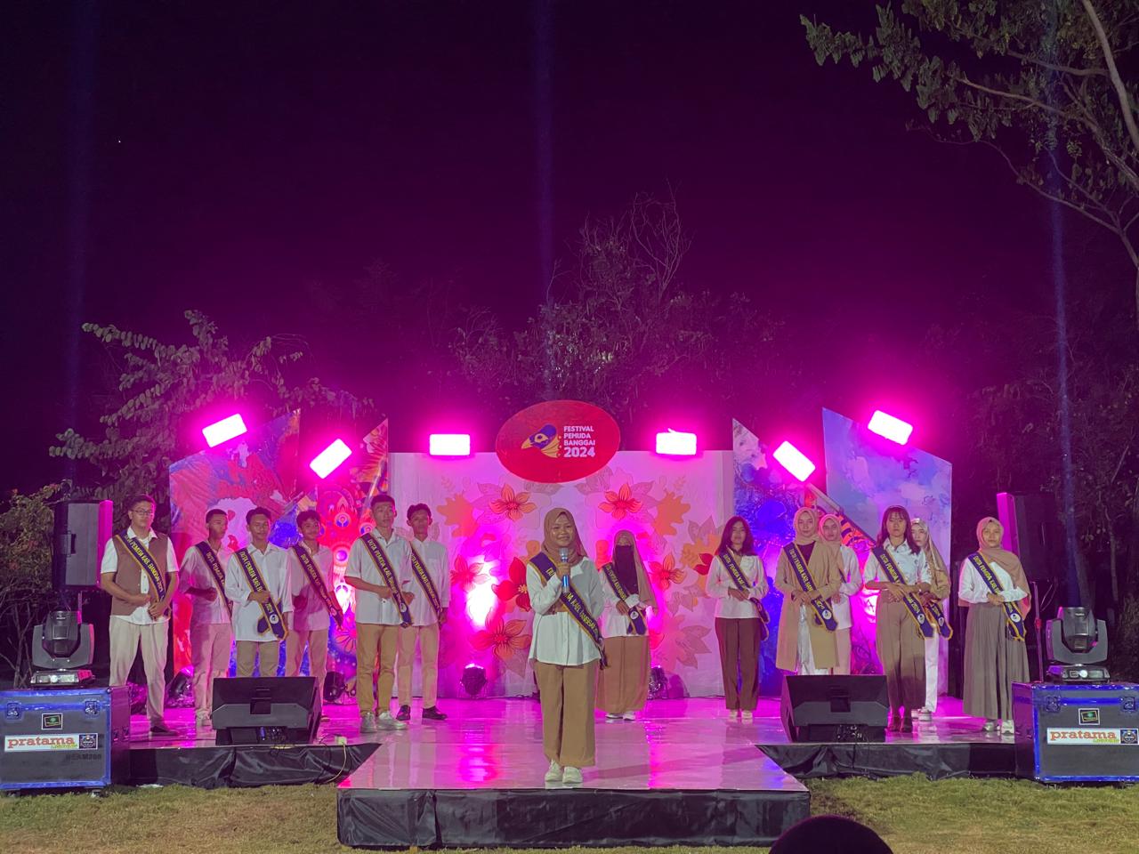 Pada Festival Pemuda 2024 yang berlangsung di RTH Teluk Lalong Luwuk, para peserta Duta Pemuda Banggai diperkenalkan kepada publik pada seremonial pembukaan, Jumat (25/10/2024) malam.