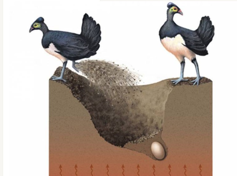 Ilustrasi maleo saat bertelur, dimana telurnya langsung ditimbun pasir hingga menetas dengan sendirinya. [Dok BKSDA]