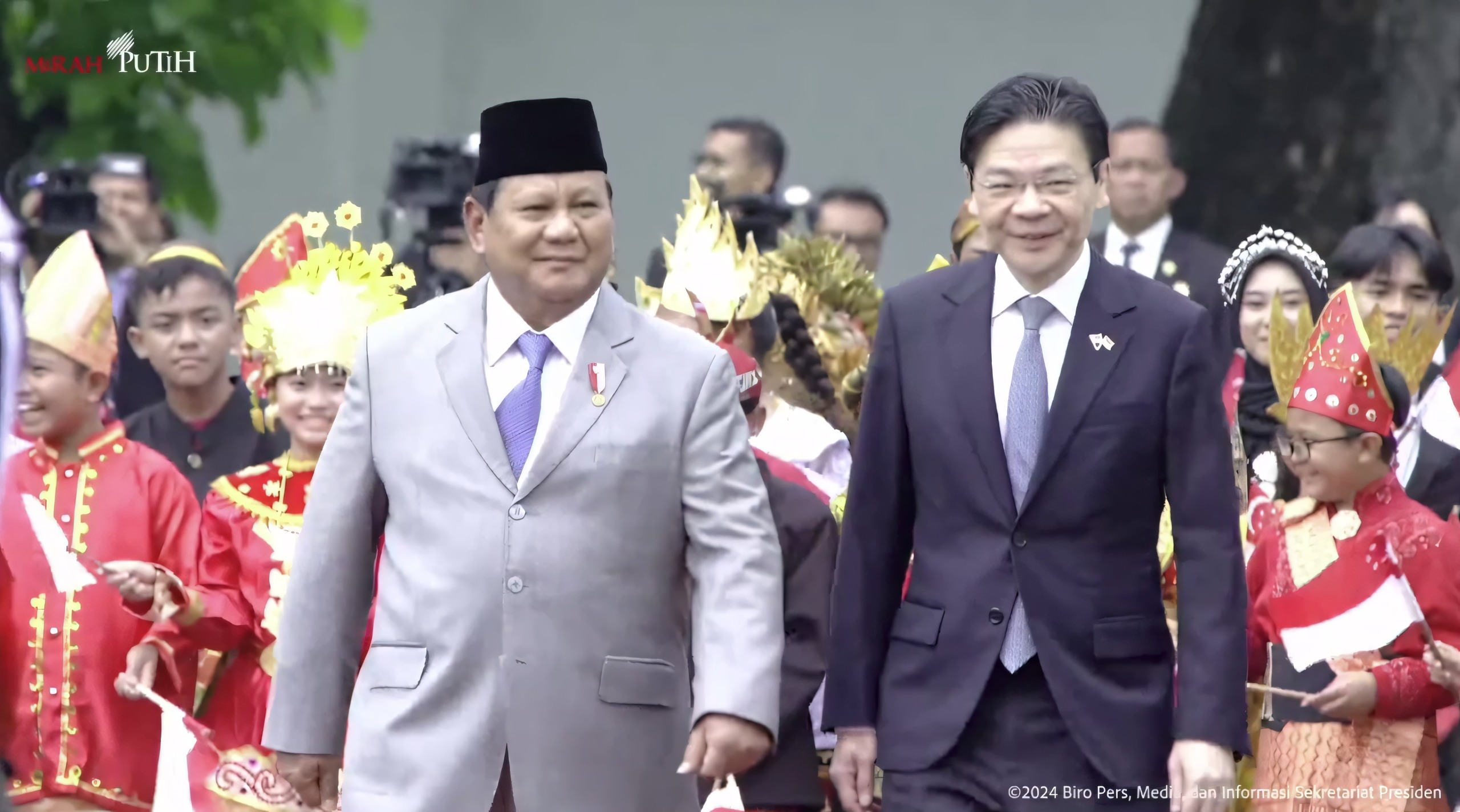 INFO LUWUK – Presiden RI Prabowo Subianto menerima kunjungan resmi kenegaraan dari PM Singapura Lawrence Wong di Istana Merdeka, Rabu (6/10/2024).