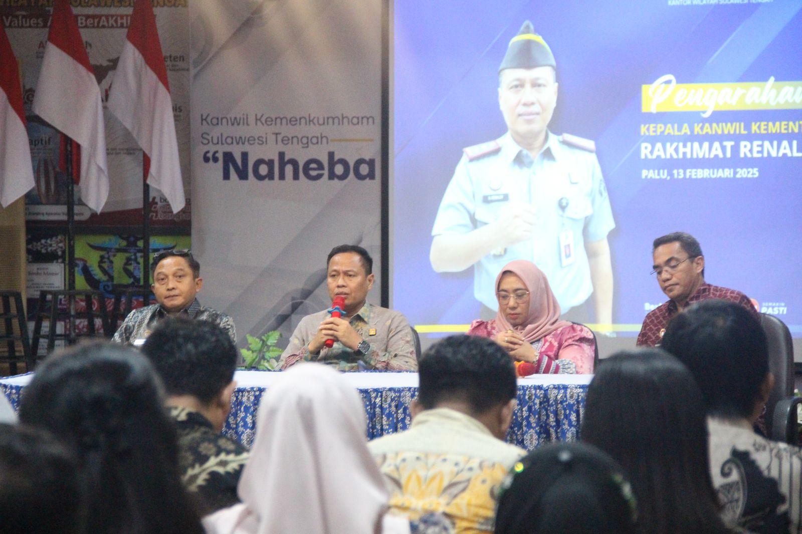 Penerapan pola kerja WFH disampaikan oleh Kepala Kanwil Kemenkum Sulteng, Rakhmat Renaldy, dalam rapat di Ruang Garuda, Kamis (13/02/2025).